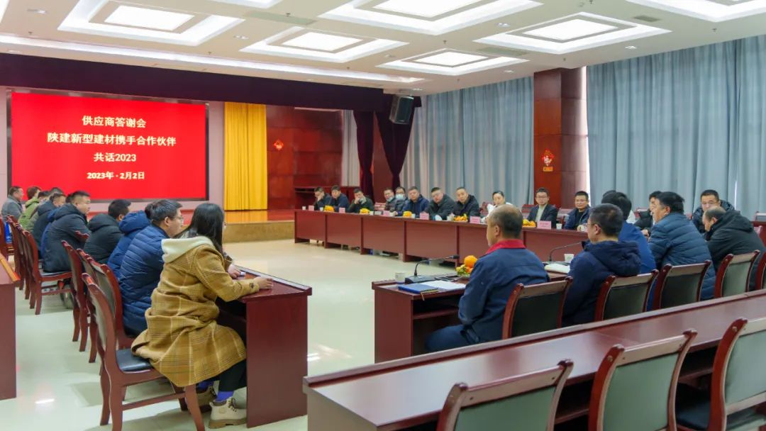 為感謝各供應(yīng)商過去一年的工作,促進(jìn)與各供應(yīng)商來年的合作關(guān)系,增進(jìn)了解與信任,2月2日,陜建新型建材公司舉辦供應(yīng)商答謝會(huì),會(huì)議由陜建產(chǎn)投集團(tuán)副總經(jīng)理、公司黨支部書記、董事長(zhǎng)佀偉主持,公司全體領(lǐng)導(dǎo)班子、各分管領(lǐng)導(dǎo)以及各供應(yīng)商出席會(huì)議。