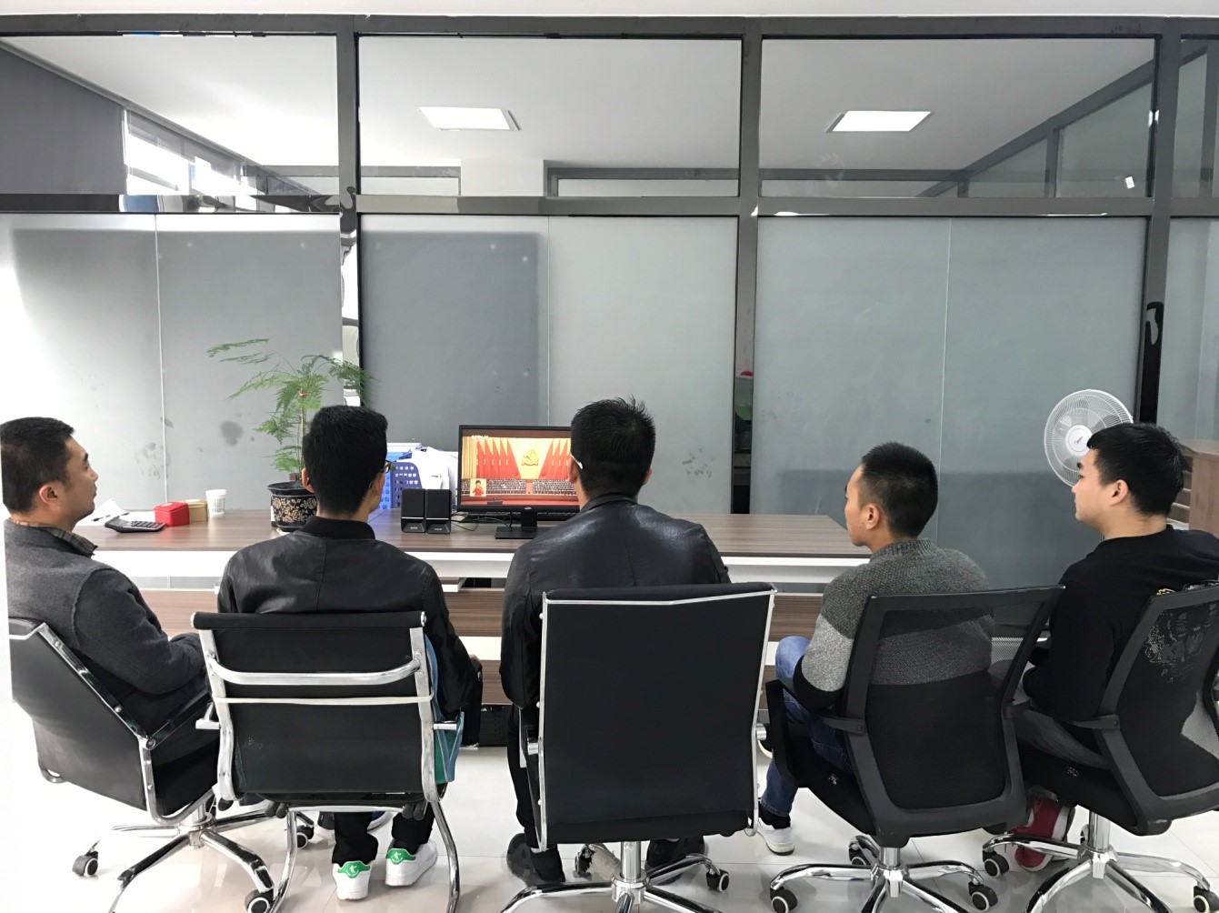 陜建新型建材公司干部職工收看大會直播