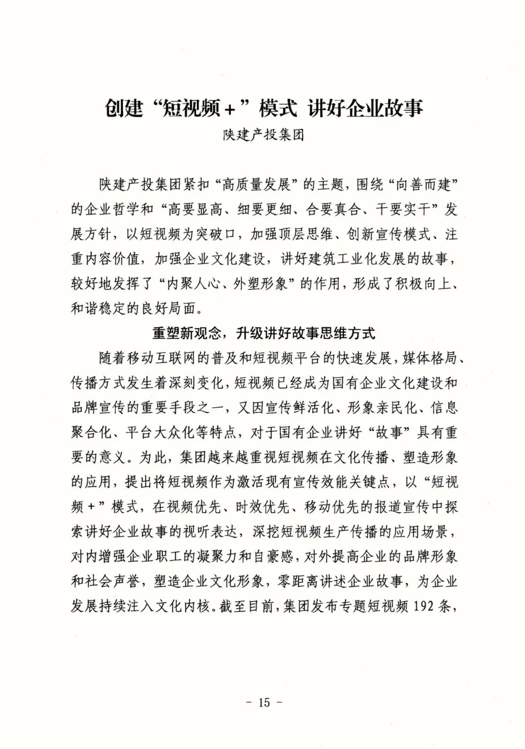近日,陜西省國資委印發(fā)的第5期“企業(yè)文化建設專項提升行動工作簡報”,對陜建產投集團企業(yè)文化建設工作中運用“短視頻+”模式進行了重點經驗分享,讓我們一起看看吧!